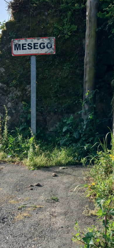 As ruas de Mesego en estado lamentable. A maleza invade todos os recunchos do pobo.Ata o letreiro q identifica o pobo carballiñes de Mesego é invadido pola maleza. Zona recreativa en abandono total.