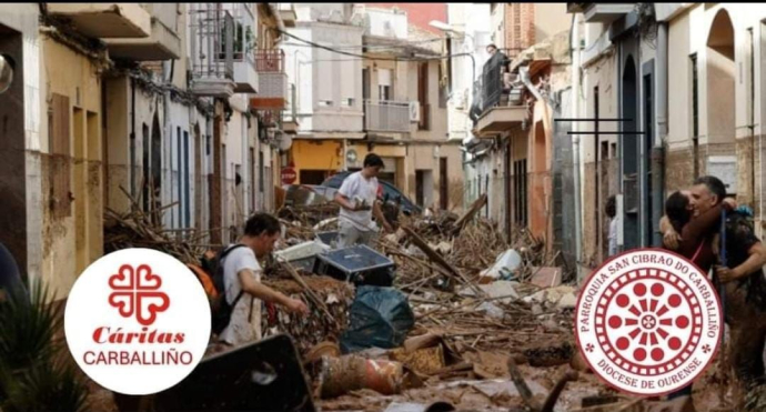 Cáritas Parrroquial do Carballiño propónse canalizar as axudas que van achegarse directamente a Cáritas Parroquial de Paiporta, unha das localidades máis gravemente afectadas pola catástrofe humanitaria provocada pola "DANA" en terras valencianas.