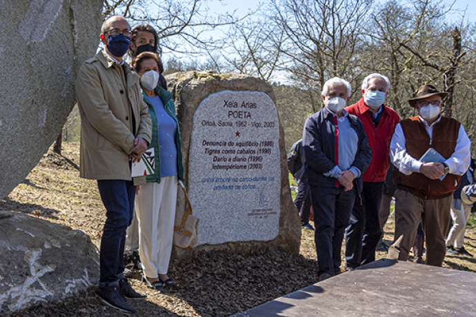 A Insua dos Poetas, no Carballiño, acolleu este pasado sábado a celebración do IX Día da Auga, da Árbore e da Poesía, que na presente edición converteuse na primeira homenaxe ourensá á poeta Xela Arias, protagonista do Día das Letras Galegas 2021. Poesía, danza e música mesturáronse nun acto que incluíu o descubrimento dunha escultura do artista ourensán Alberto Fernández, realizada en granito procedente das canteiras de Melón e que, dun xeito simbólico, interpreta a poesía de Arias.