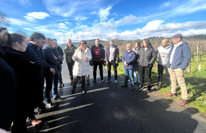 O presidente provincial, acompañado pola presidenta do Consello Regulador do Ribeiro, Concepción Iglesias; alcaldes da zona, viticultores e bodegueiros, percorreron viñas en Barxalonga, Beade, onde o responsable informático, Antoni Antés, explicou aos asistentes o funcionamento desta aplicación dixital, que é a primeira vez que se implanta nunha denominación de orixe galega, tralo seu éxito en zonas vinícolas de Cataluña.