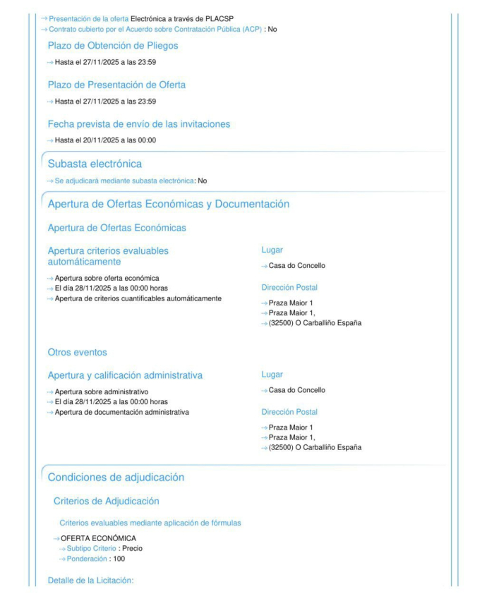Hoxe nun dos momentos de debate intenso entre o señor Sebastian e o señor Gonzalo, o primeiro dixo que o contrato para cambiar as farolas da avenida do Balneario foi no seu momento redactado polo psoe moito antes de que o pp entrase a gobernar co pacto de "polo ben do Carballiño" e que agora o alcalde en funcions e o actual goberno tiña a obriga de executar dito contrato. Esto estaría ben si fose verdade pois me parece que o amigo Sebastian non contaba que alí tamén opina o señor Manuel. Manuel detallou que ese era un contrato menor, a cantidade do mesmo e que lle parecía que o mesmo fora redactado cando xa estaba formada a coalicción pppsoe. Como dato mata relato e Manuel, ao meu parecer, é de esa pouca xente que intenta informarse antes de opinar, tardou menos de dez minutos en dar a data na que se da a coñecer o contrato: noviembre do 2025. Eu que non é que desconfie de ninguén pero tamén me gusta saber as cousas busquei ese contrato na páxina que dixo o amigo Manuel e, claro, alí está o documento.