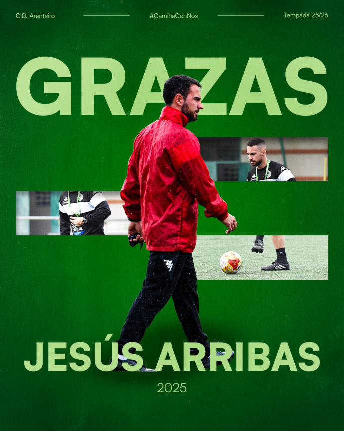O C.D. Arenteiro e Jesús Arribas poñen fin á súa etapa conxunta tras a disputa da 11ª xornada de liga. Desde o club queremos agradecerlle a súa dedicación, profesionalidade e traballo ao longo destes meses. Foi un período de compromiso diario, e desexámoslle o mellor no seu futuro profesional e persoal. A súa carreira continúa - e agardamos - que lle traia moitos éxitos. Por parte do Arenteiro, seguimos a traballar e a preparar o seguinte capítulo.