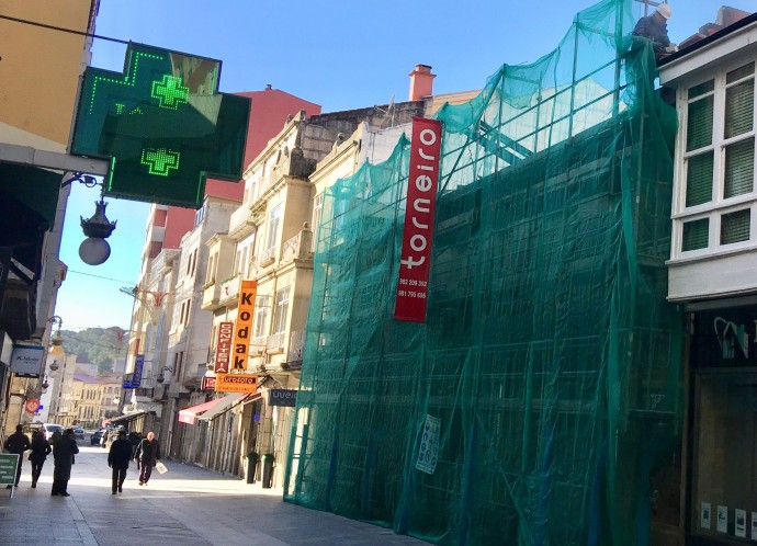 Comezou a desmontaxe da fachada da casa da antiga ferraxería Soto, na rúa Tomás Maria Mosquera, outro dos edificios emblemáticos do Carballiño que desaparece.